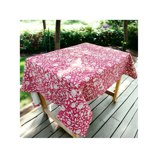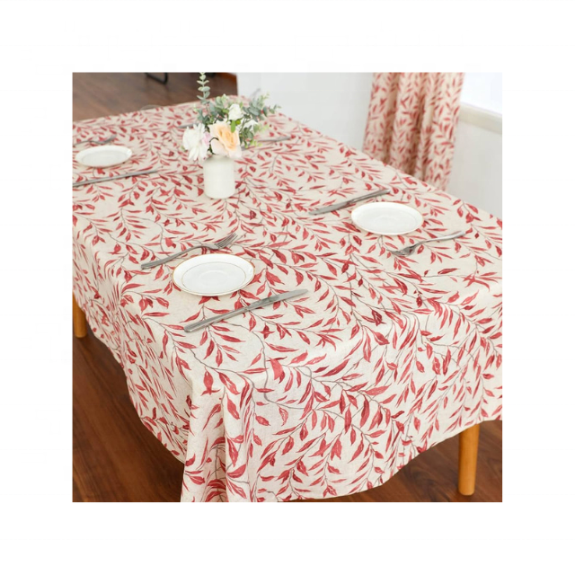 Affordable Reusable Organic Factory Wholesale 100% Cotton Embroidered Burgundy 8ft Tablecloth for Outdoor Dining & Celebrations
