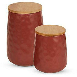 Affordable Set of Round Storages Boxes With Wood Lid Red & Natural Home Goods Kitchenware Storage Canisters Coffee Canister