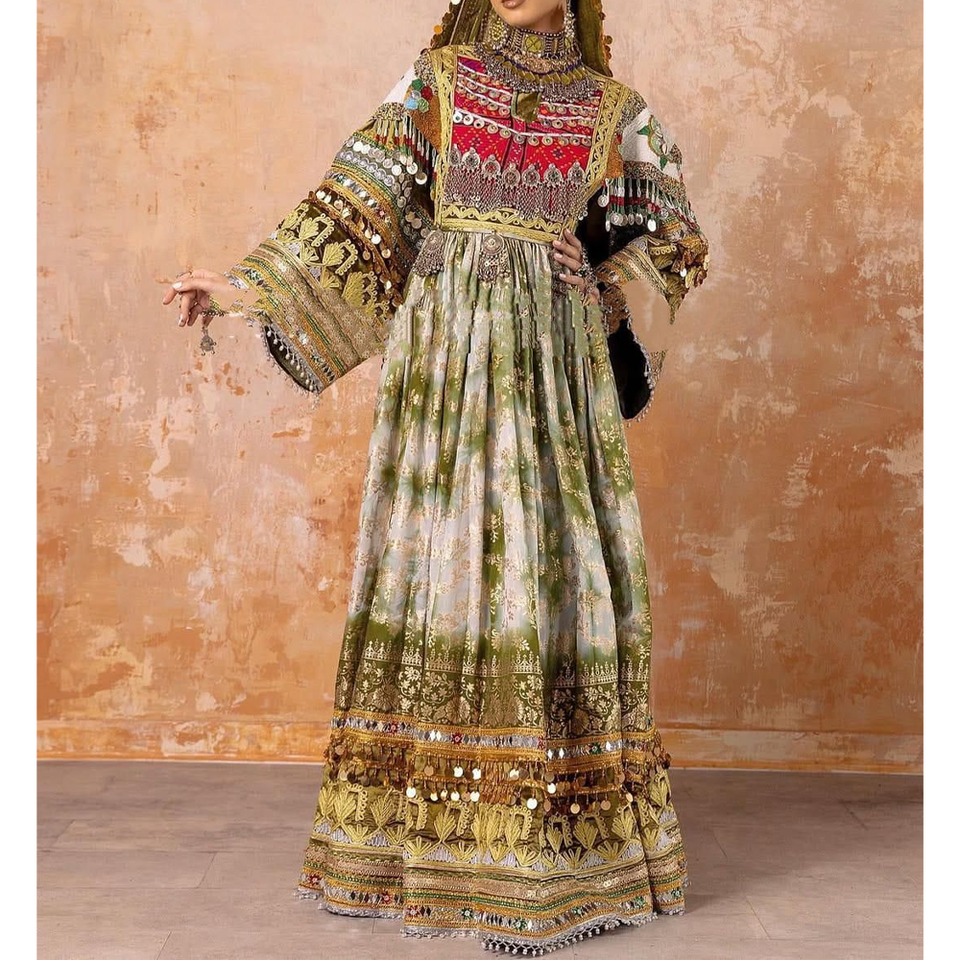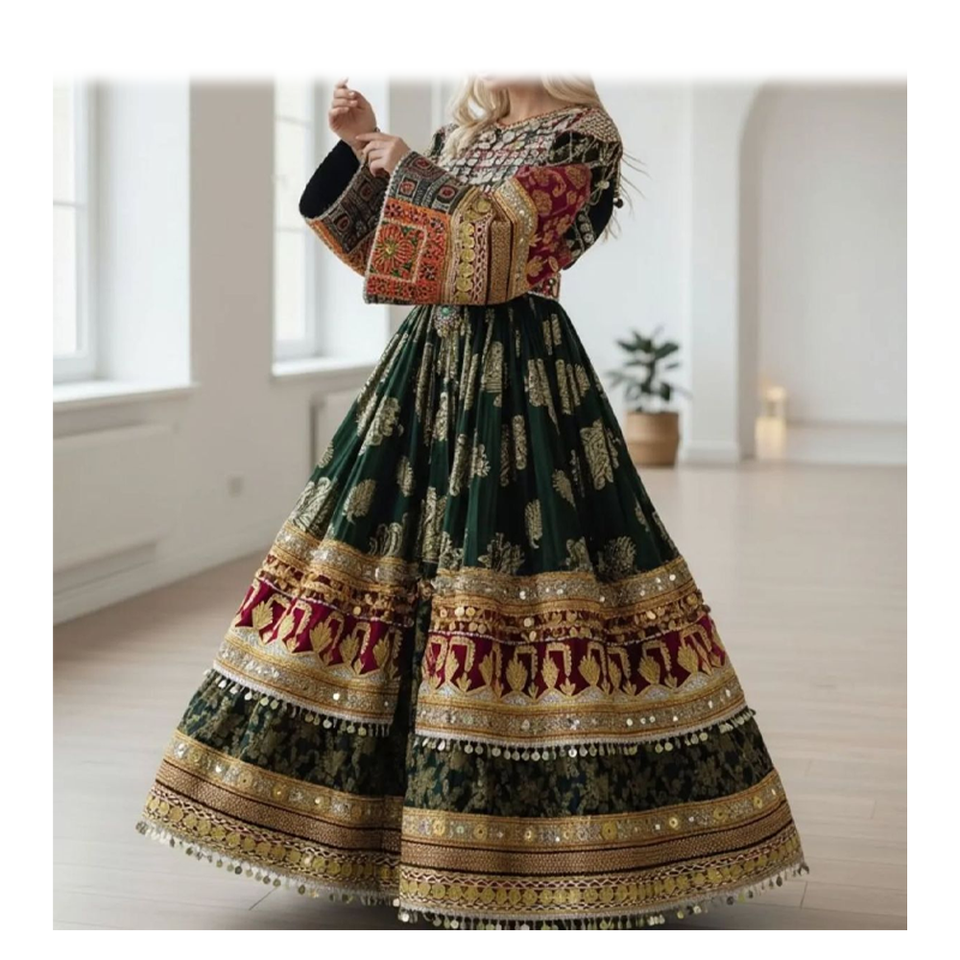 Afghan Ethnic Female Dress Handmade Long Maxi with Bright Embroidery Details