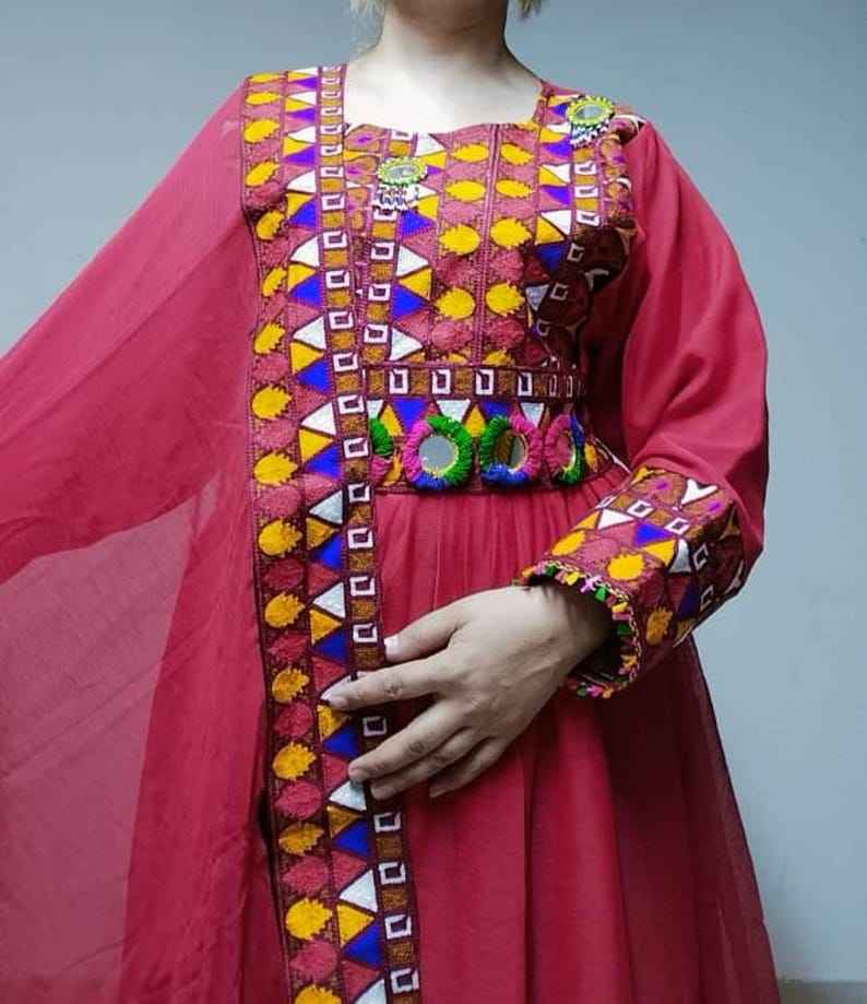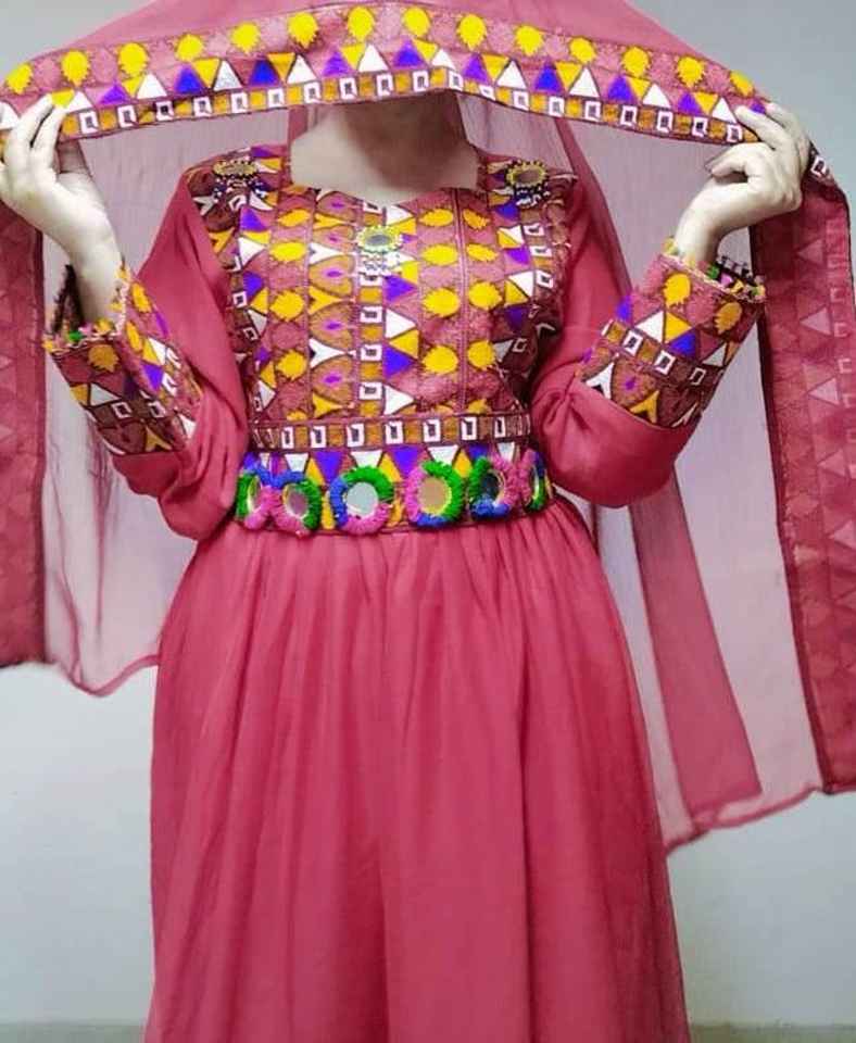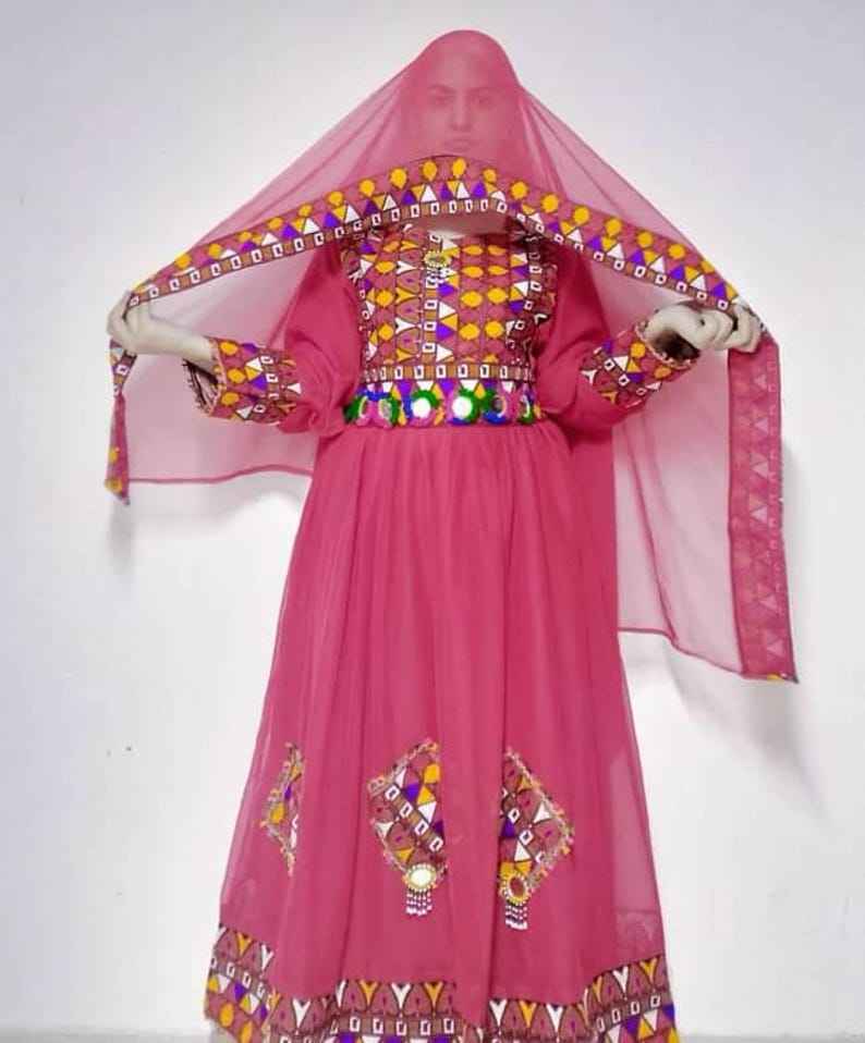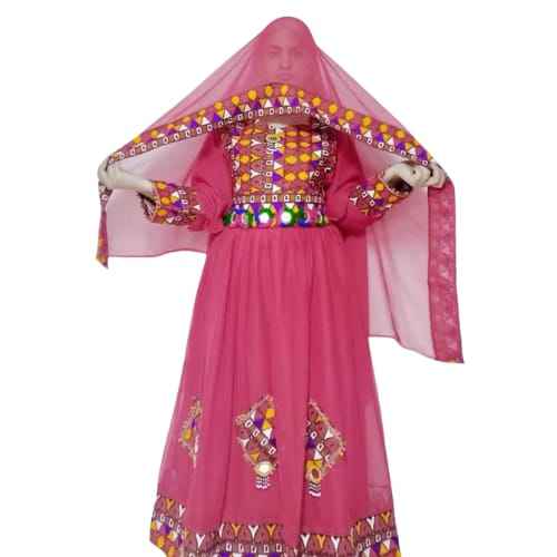 Afghan Kuchi Bridal Dress Clothing pink and Multicolored Tassels Kuchi Wedding Dress Tribal Afghan Dress