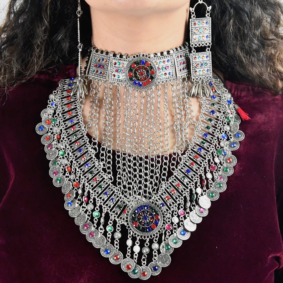 Afghan Kuchi Necklace,Tribal Necklace Tribal Chokar , Vintage Kuchi Tribal Afghan Gypsy Handmade Coins Pendant Necklace