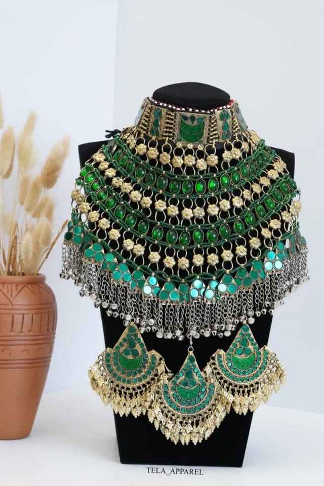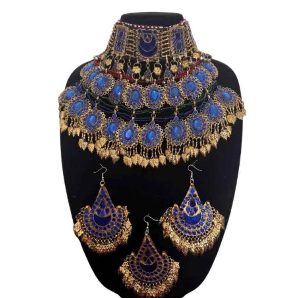 Afghan Kuchi Traditional Women's Fine Jewelry Sets Long Necklace Antique Silver Plated Wedding Gift