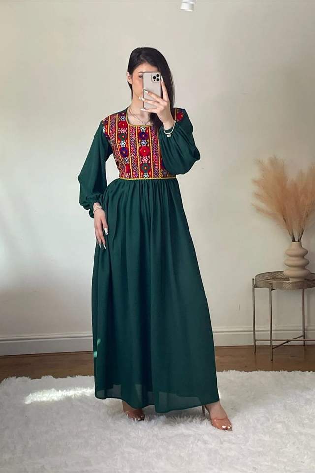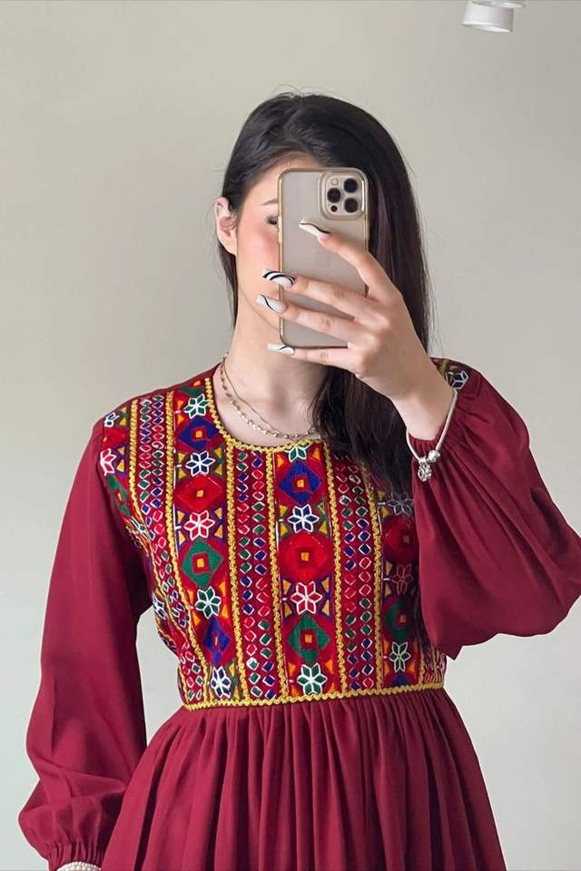 Afghan Kuchi Tribal Vintage Women's Dresses 100% High Quality Fabric Wedding Bridal Lace Button Zippers Loose Fit