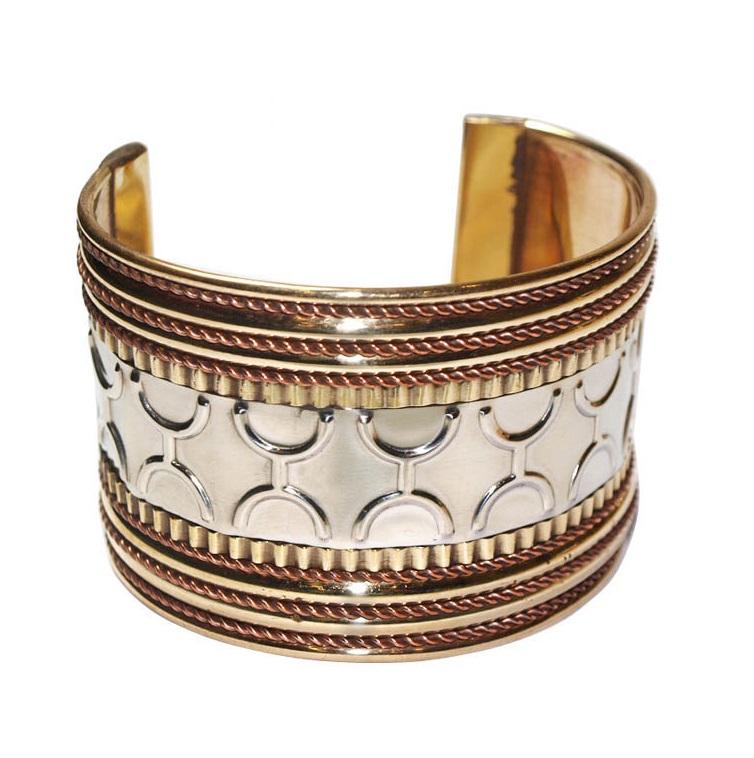 African Boho Brass Cuff Bracelet – Wide Hammered Tribal Statement Bangle Custom Etched Patterns Gold Ethnic Jewelry Wholesale
