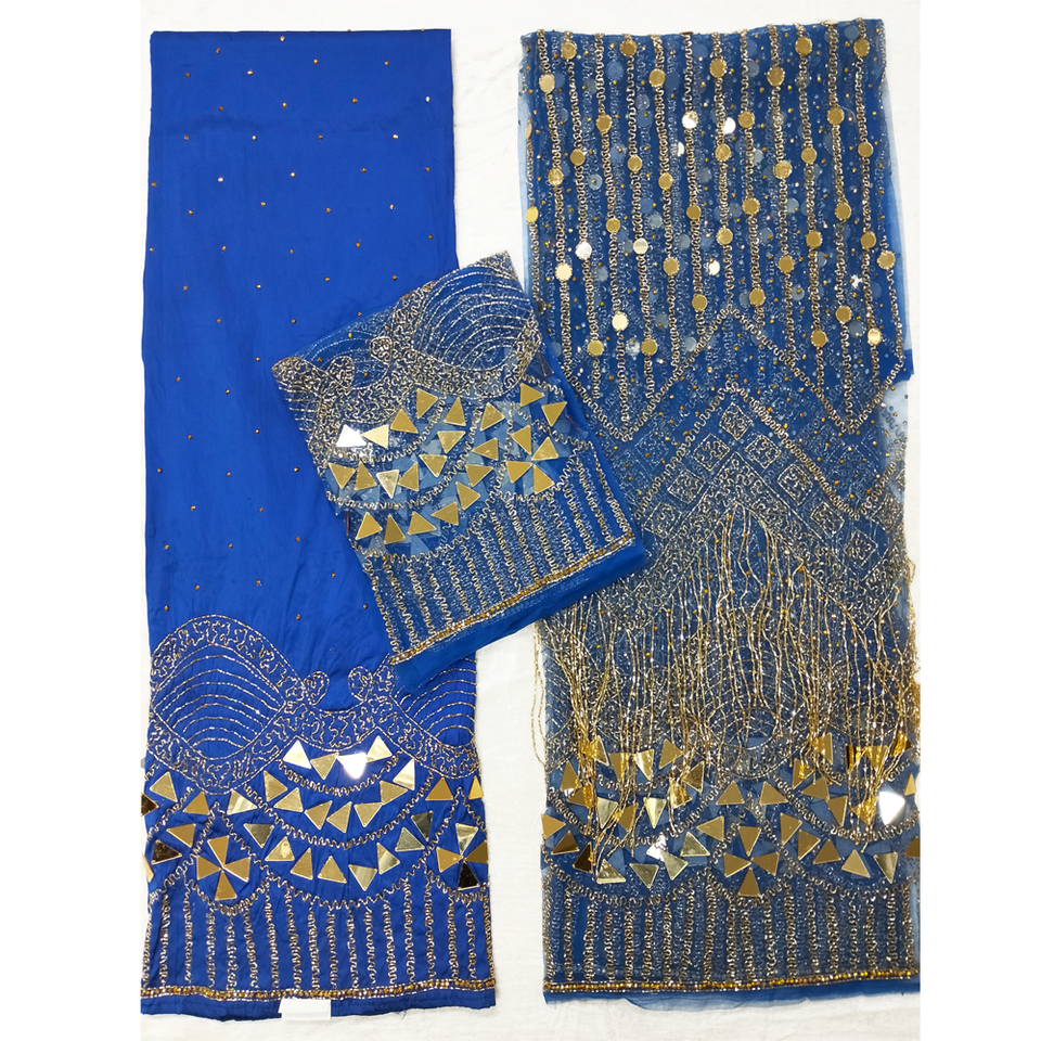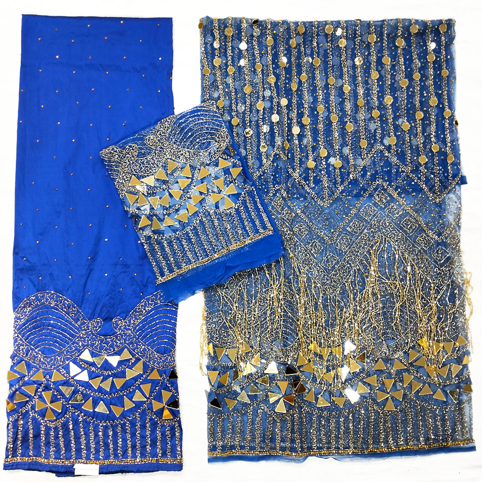African George Raw Silk Fabric Nigerian Wrapper With Super Quality Handmade Stone Beaded George Wrapper for Ceremonial Dress