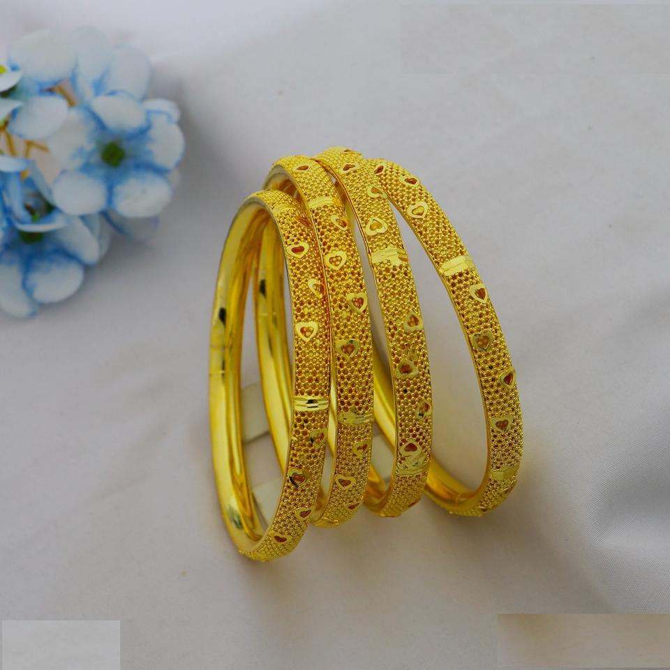 African Gold Plated Fancy Bracelet Bangle Premium Quality Dubai Special Gold Plated 4 PC Brass Bangles for Women & Bridal Girls