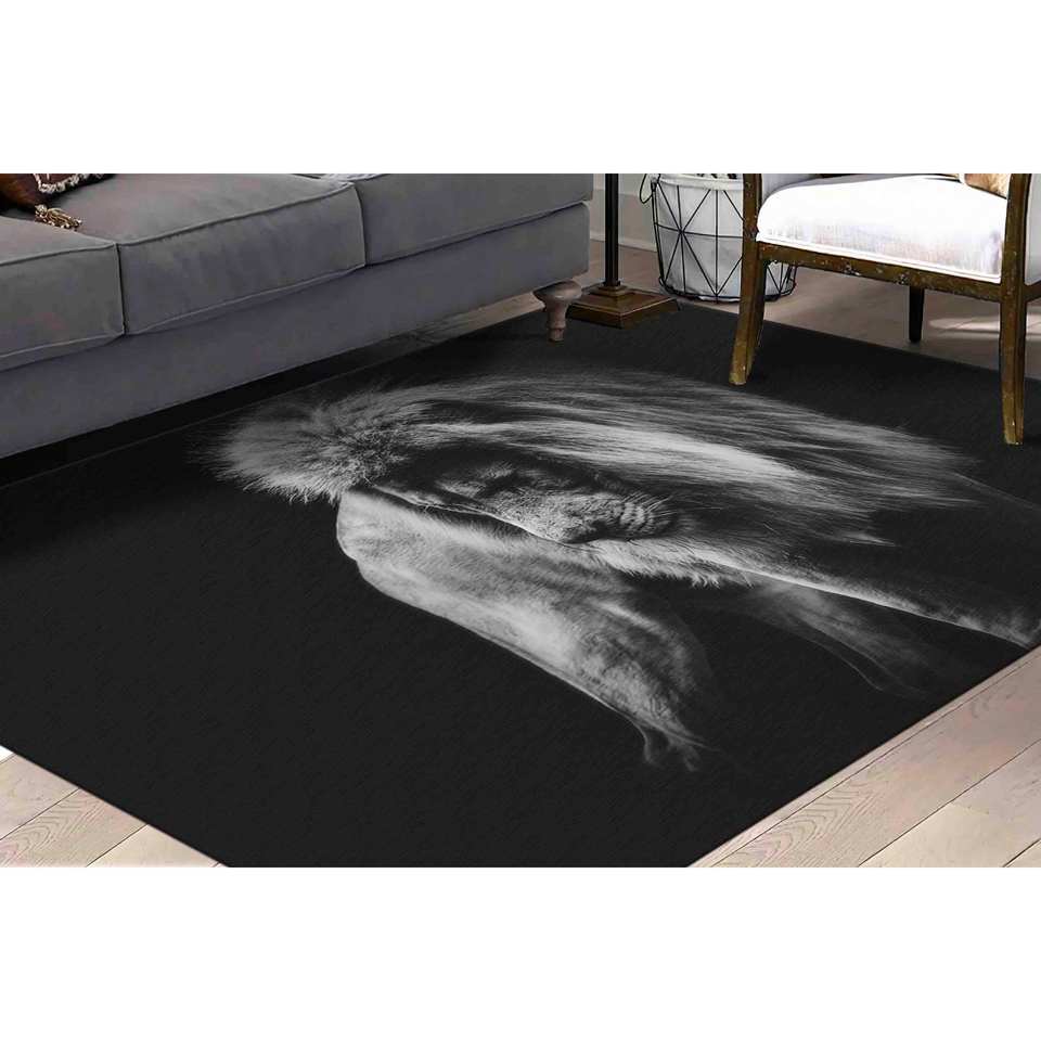 African Lion Portrait Rug: Black Animal Accent Rug,Nonwoven Soft Rug