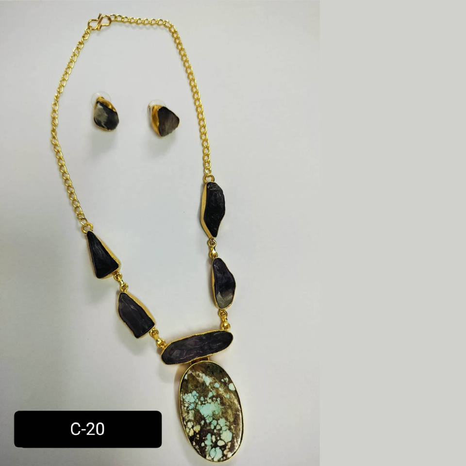 African Turquoise Amethyst Artifical Jewellery Unique Design Collection Neck Piece Set With Earning Gold Plated Black Color