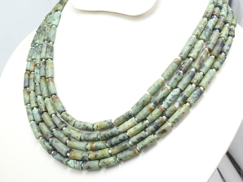 African Turquoise Green Tube Shape Matte Polished Bead 14Inch 8X5To18X5MM Approx Natural Stone Third Party Certified