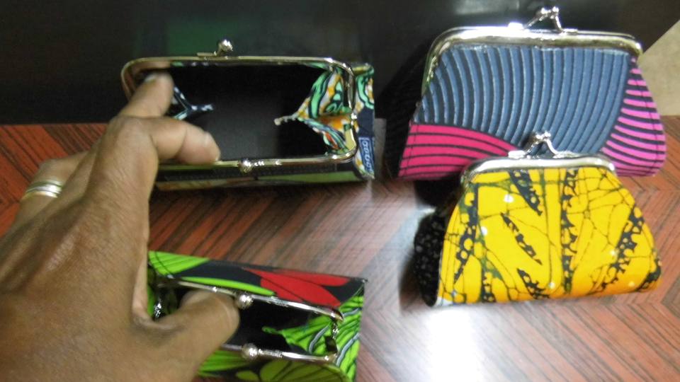 African Wax Fabric RAFFIA Clutch Bag Wristlet Purse Pouch with Two Handles Zipper Closure Decorated with Flowers and Bow