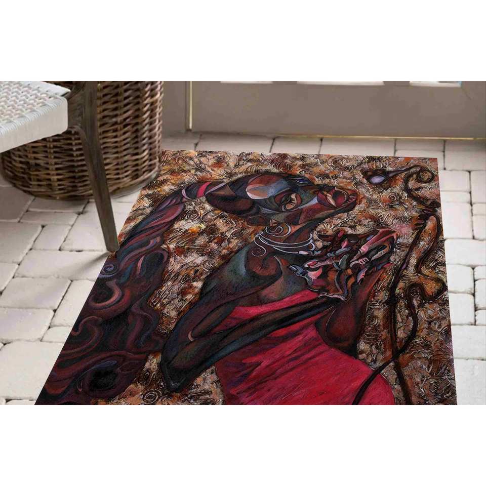 African Woman Painting Rug: Ethnic Home Decor, Printed Rug,Nonwoven Soft Rug