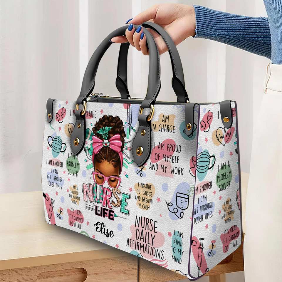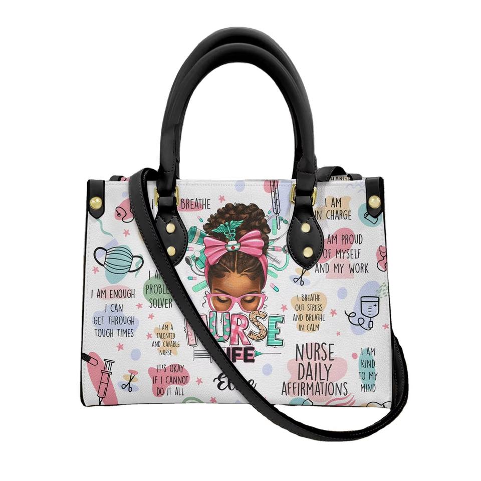 Afro Nurse Leather Shoulder Bag Drop Ship POD Personality Womans PU Handbag