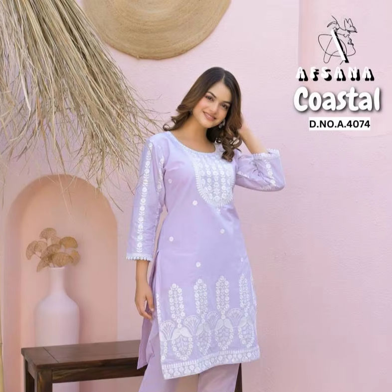Afsana Co-Ord Set Cotton Embroidered Indian & Pakistani Clothing with Lakhnvi Work