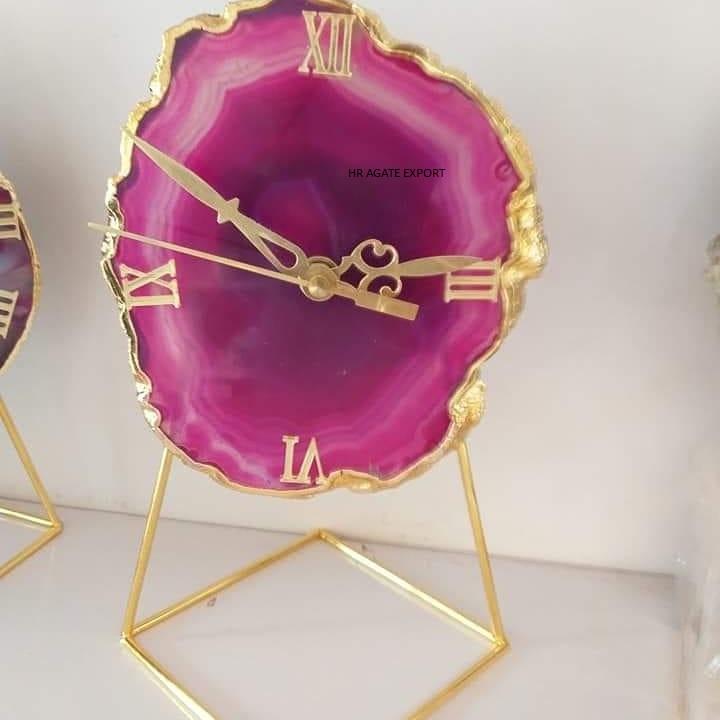 Agate Natural Stone Wholesale Best Quality Blue Home Decoration Coaster Watch Crystal High Polished Quartz Slice Wall Clock