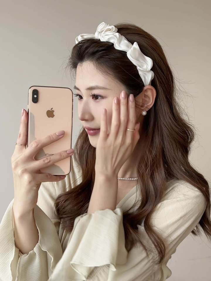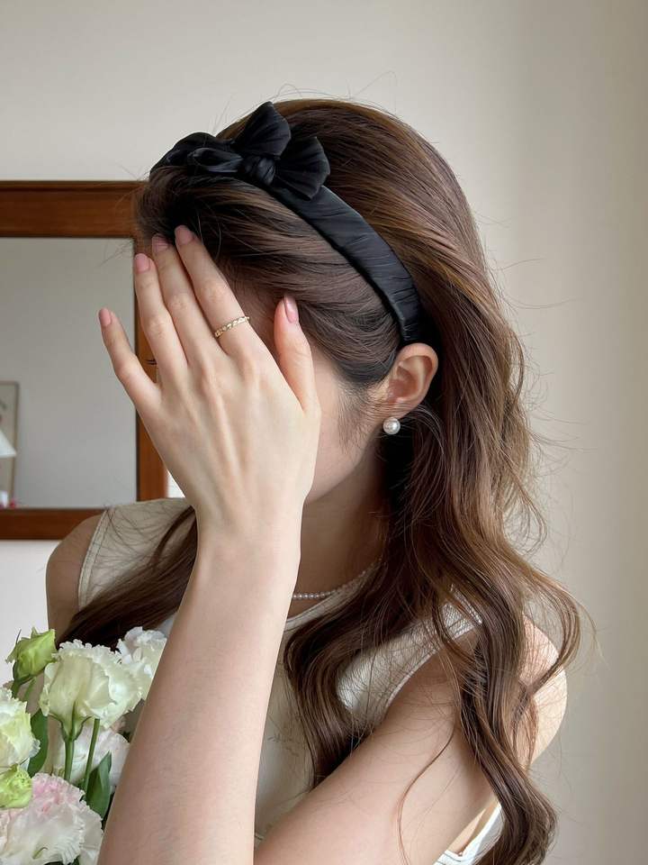 Age-Defying Style Bow Headband with Pearlescent Silky Ruffles Face-Washing Hair Clip Ornament