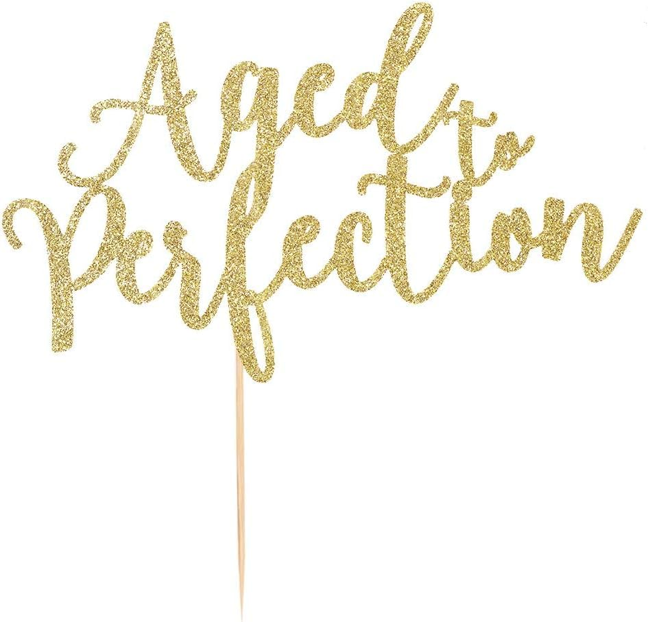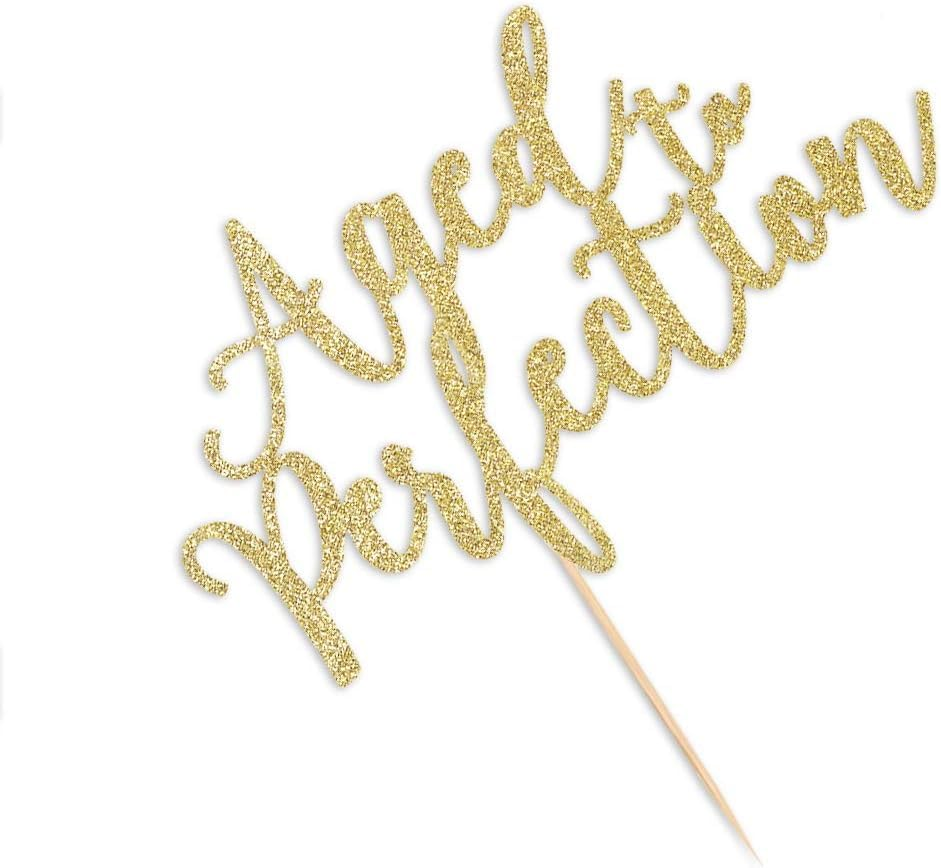 Aged to Perfection Cake Topper in Gold Glitter Classy Party Decor for Birthday, Anniversary, or Engagement Celebrations