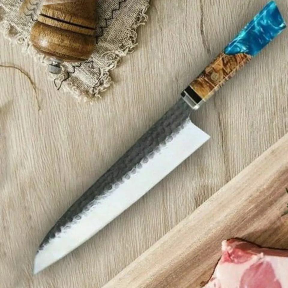 Ahmad Fabric Custom Handmade 13-Inch Carbon Steel Chef Knife with Leather Sheath Beautiful Handle Customizable Supported