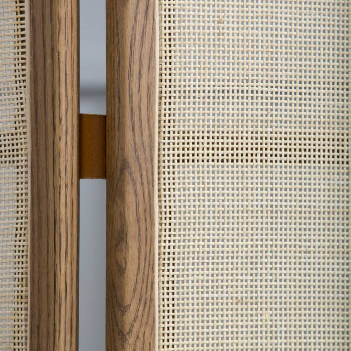 Description:modern room divider made from solid teak wood frame and woven rattan.