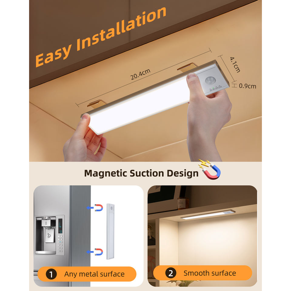 Aigostar Rechargeable LED Cabinet Light Motion Sensor 1100mAh LED Kitchen Storage 3000K Color Temperature 12V Input Voltage PC