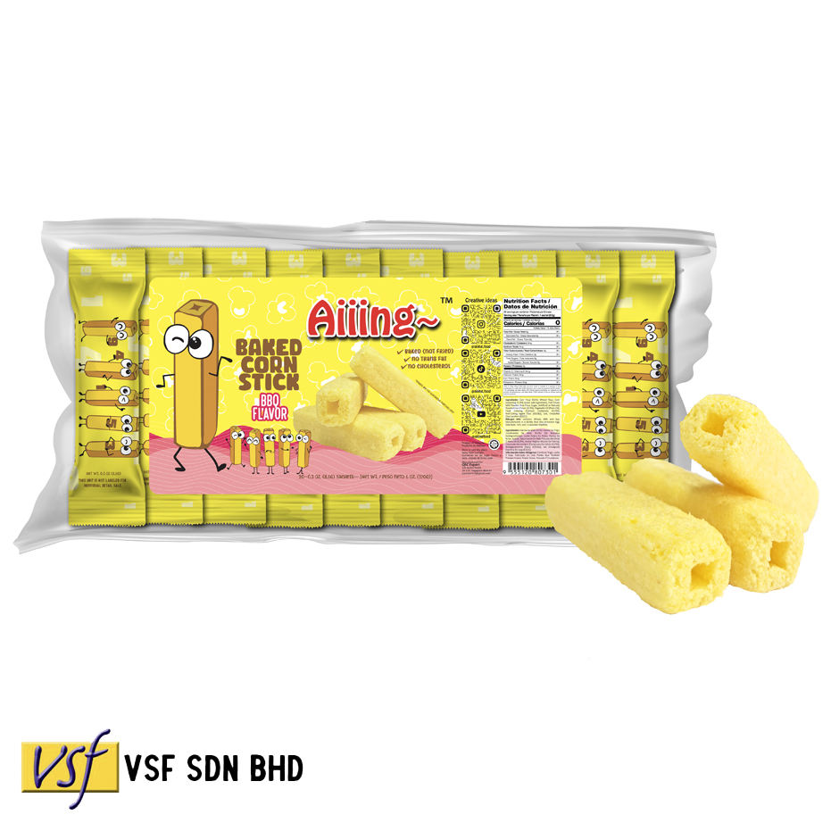 Aiiing Baked Corn Stick BBQ Flavor 8.5g x 20s x 24 pkts Halal Made in Malaysia Baked No Trans Fat No Cholesterol Healthy