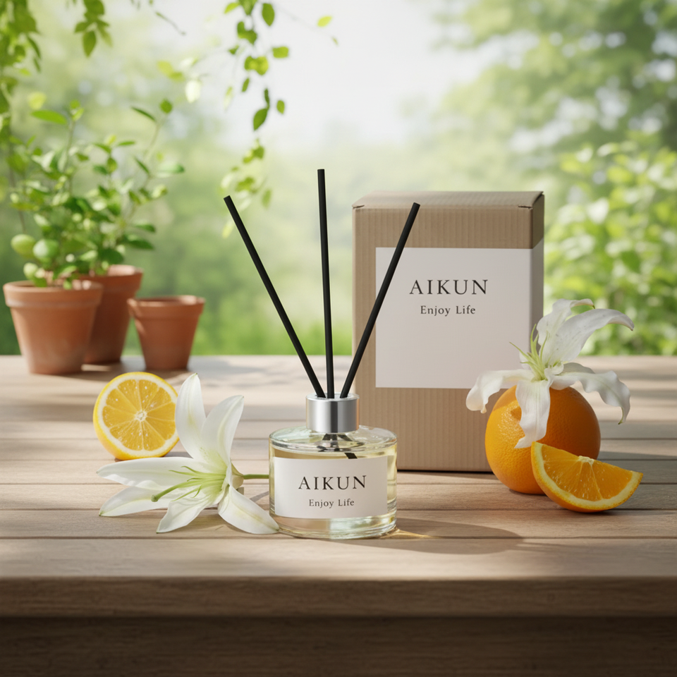 Aikun Eco-Friendly Reed Diffuser Glass Bottle Long Lasting Aroma Diffusing Lemon Orange Blossom Fragrance with Gift Packaging