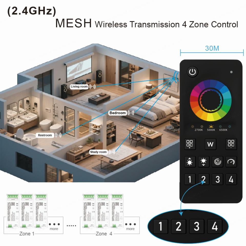 Application:4 Zone MESH Group&Sync Lighting Controller
