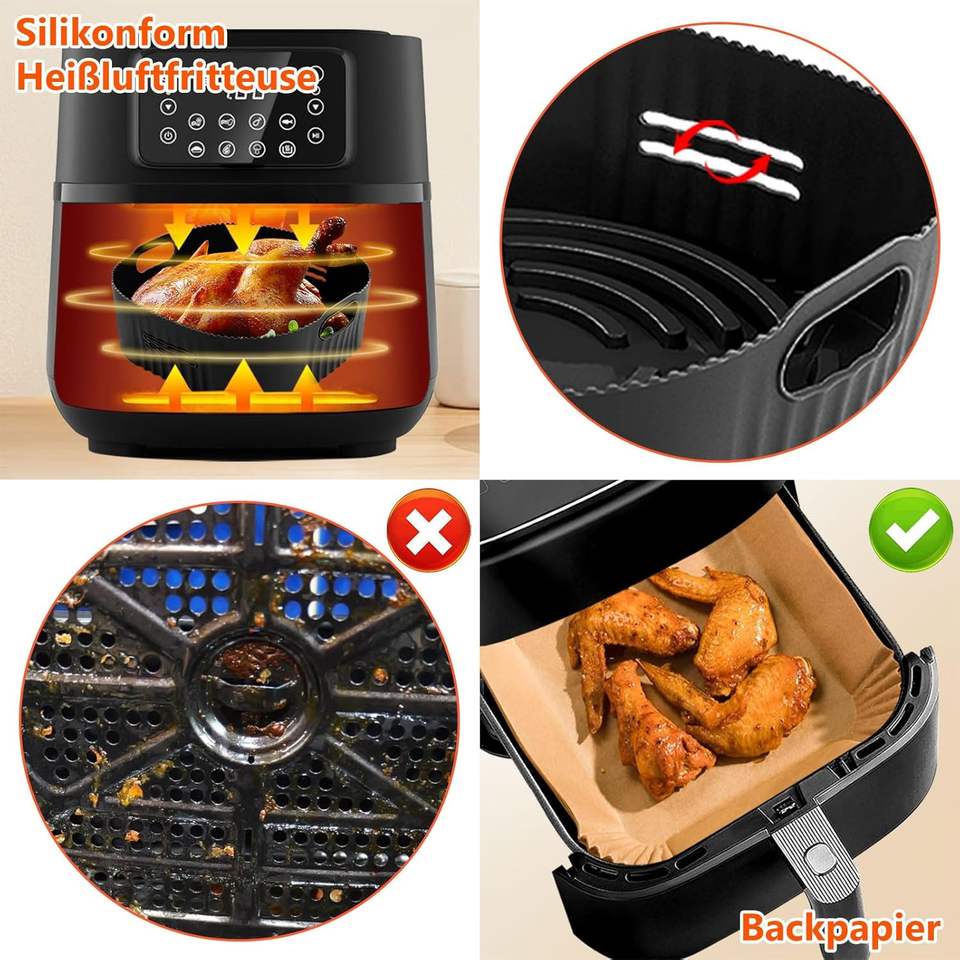 Air Fryer Accessories 4pcs 22 cm Round Silicone Baking Pan for Air Fryers Accessory Grill Rack with Baking Paper