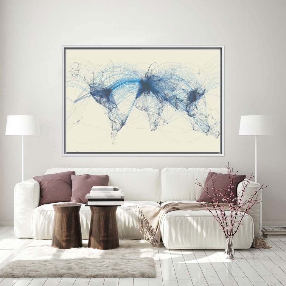 Air Traffic Flight Canvas Art: Printed World Map Wall Decor,1P:White Framed