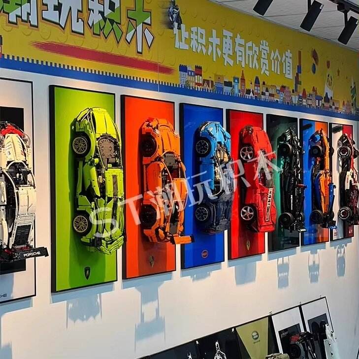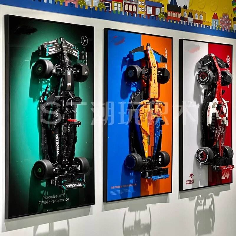 Airplane Batmobile Racing Building Block 3D Car Model Farmhouse Style Black Digital Printing Aluminum PC Material Photo Frame
