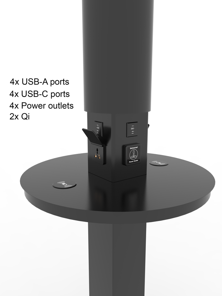 output:USB-A port x4, USB-C port x4,5V2.1A max, Universal outlet x4, AC 100-240V, Wireless charging x2, 5W/10W
