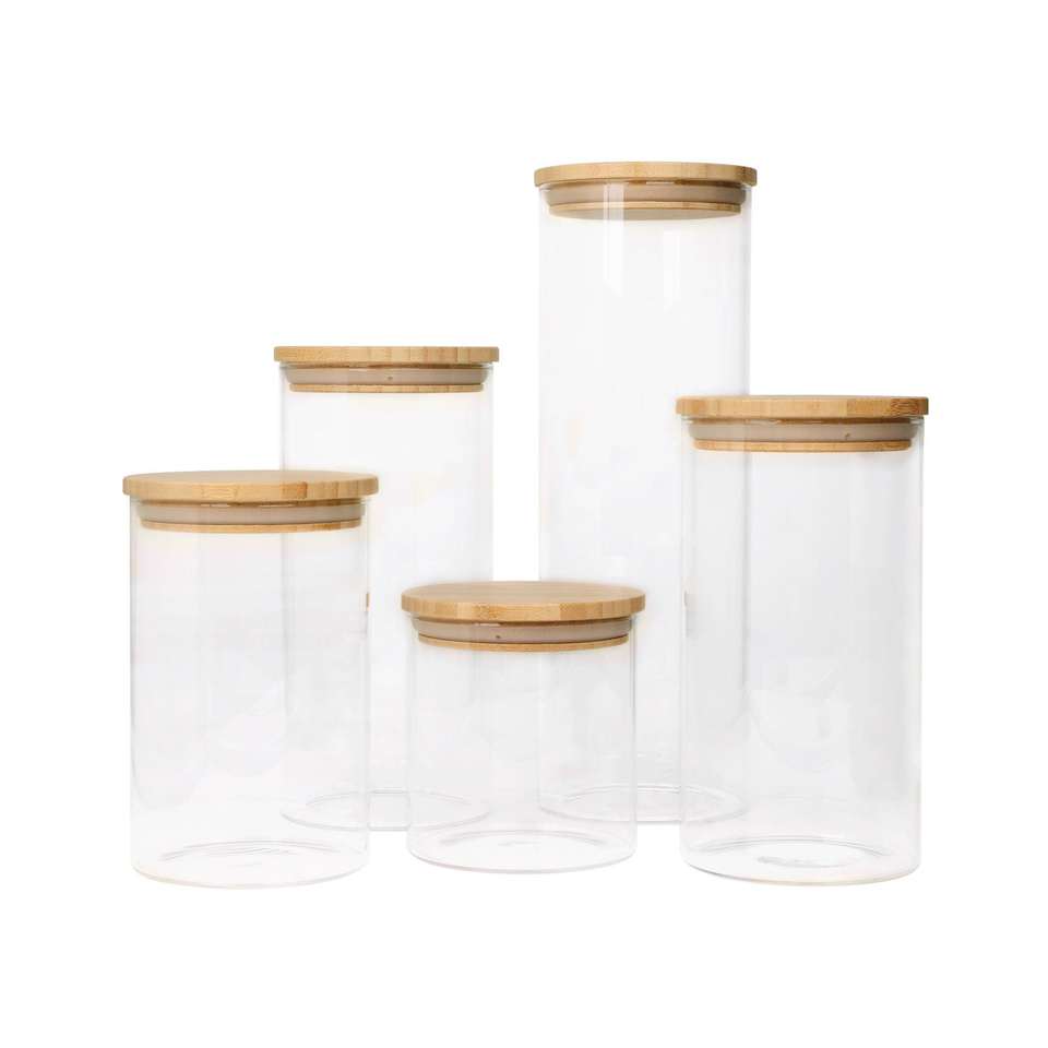 Airtight Glass Containers with Bamboo Lids, 5 Pieces