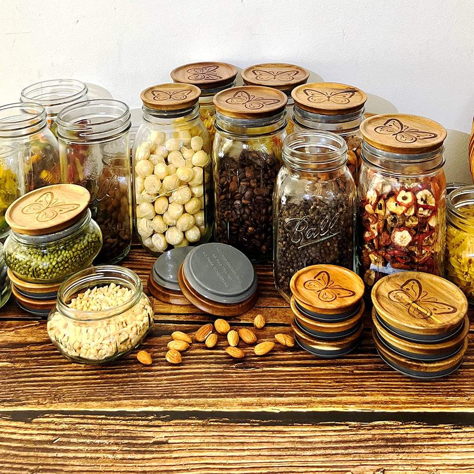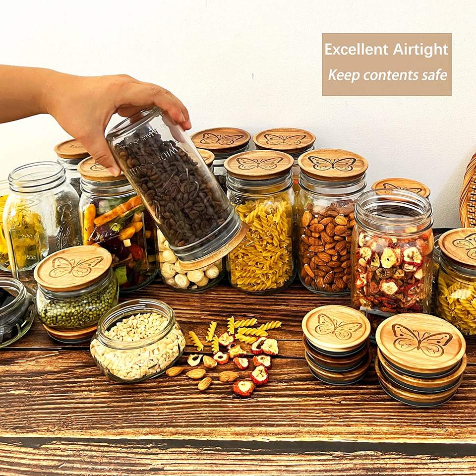 Airtight Wooden Lids Jars with Silicone Sealing Rings & Wide Mouth Decorative Model Mason Jar Lids Board