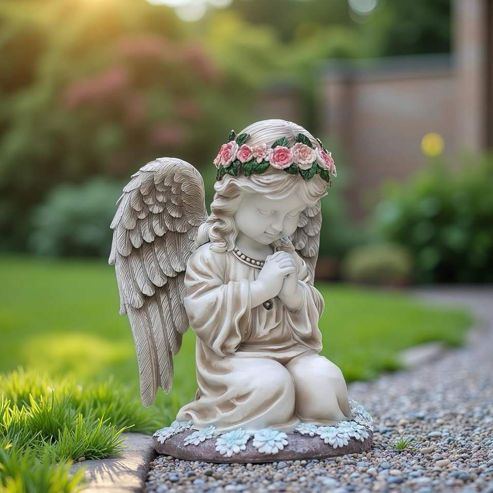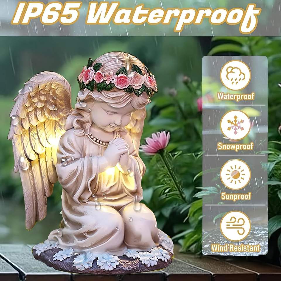 Aiyuolio Solar Angel Garden Statue with LED Lights Outdoor Figurines Decor Yard Patio Lawn Art Indoor/Outdoor Use