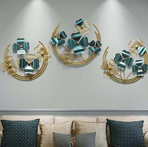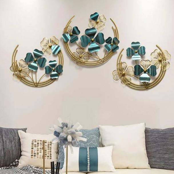 Ak Brass 3 Piece Decor Home Metal Flower Wall Art Decor Large Indoor Wall Hanging Sculptures, Natural Art Home Decoration