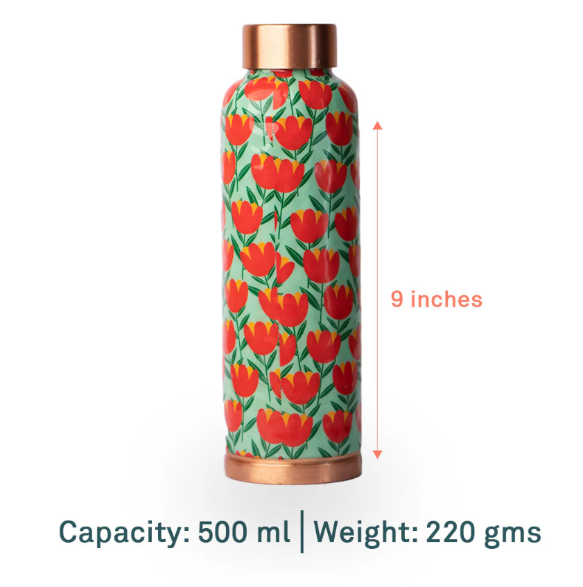 AK Brass Standard Flowers Design Copper Water Bottle High Quality Water Bottle For Personal Use