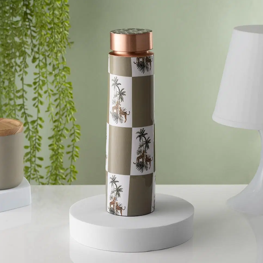 Ak Brass Glossy Printed Tapper Copper Water Bottle For Home / Personal Use Gift Pack Available