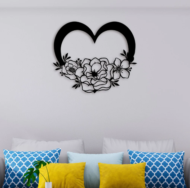 Ak Brass Modern Decorative Heart Powder Coated Finishing Metal Wall Art ! Living Room ! Bedroom & Kids Room Art