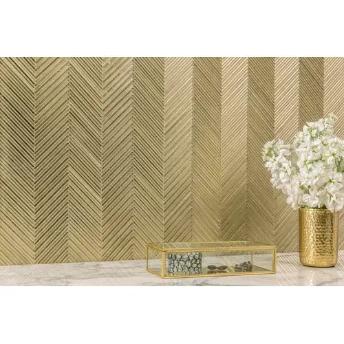 Akdo Ikat Tile Accessories Metallic Gold with Matte/Shiny Mix Chevron Pattern
