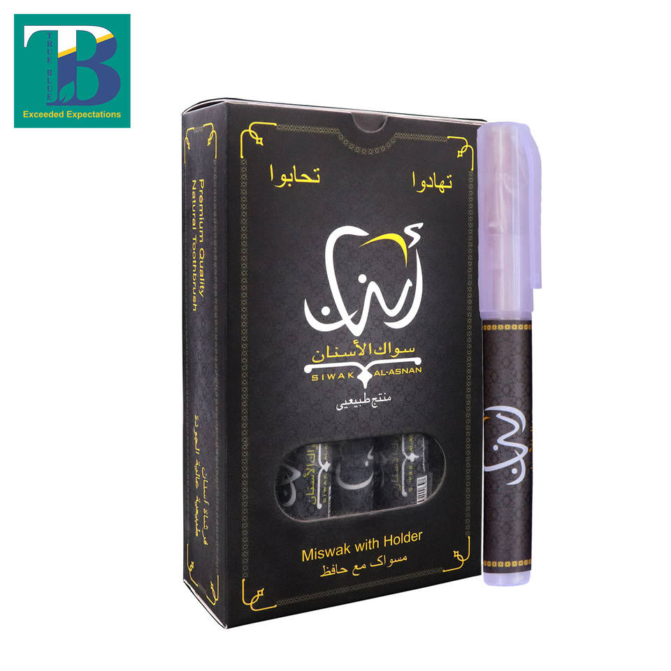 Al-Asnan 10-Piece Box Miswak with Holder Natural Teeth Cleaning Sticks for Fresh Breath Oral Health & Traditional Tooth Care