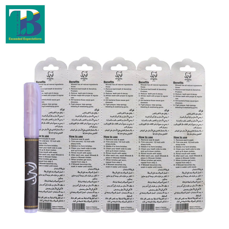 Al-Asnan Blister 5 Pieces Pack Natural Miswak/Siwak/Sewak Plastic Holder Hygienically Vacuum Sealed Kills Germs/Bacteria Oral