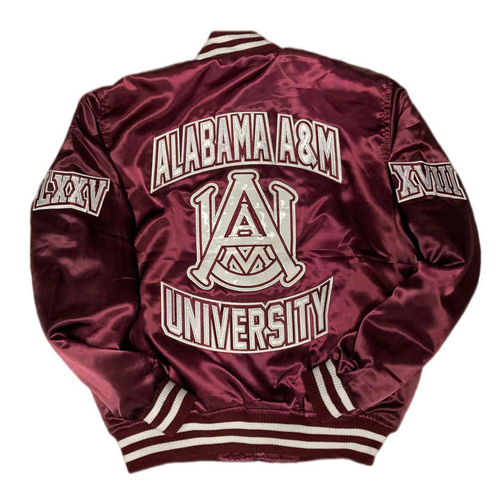 Alabama A&M University Thick Satin Baseball Bomber Jacket Customizable College Varsity Design for Winter