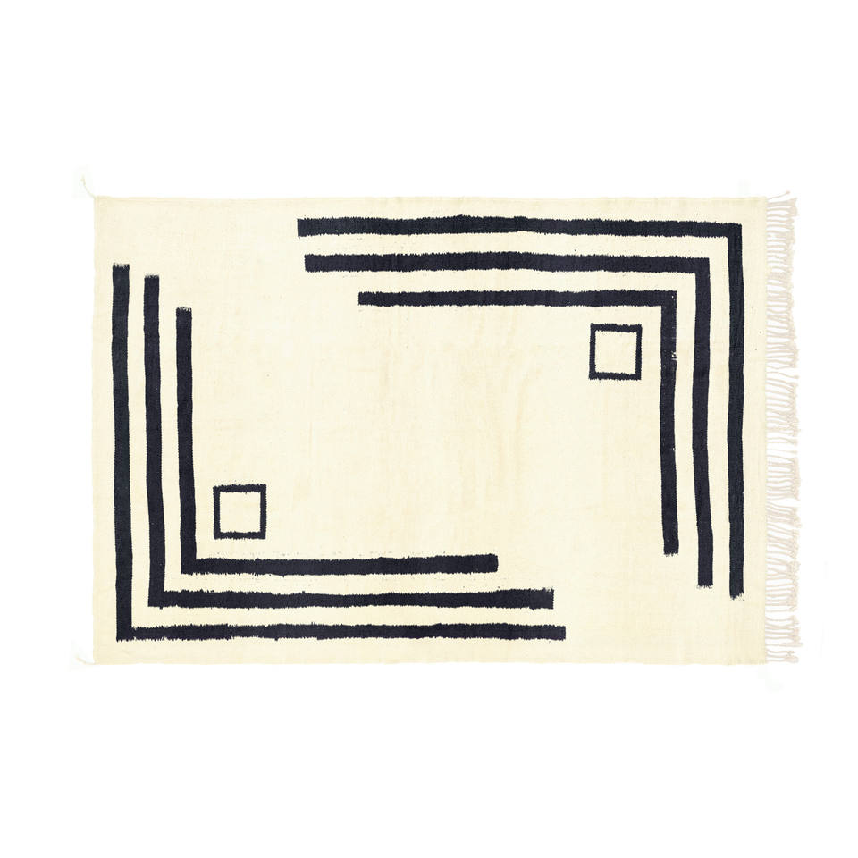 Albertina Luxury Moroccan Boho 3D Hand Knotted Wool Jacquard Technique Area Rug Black Beige Cotton for Living & Bathroom Use
