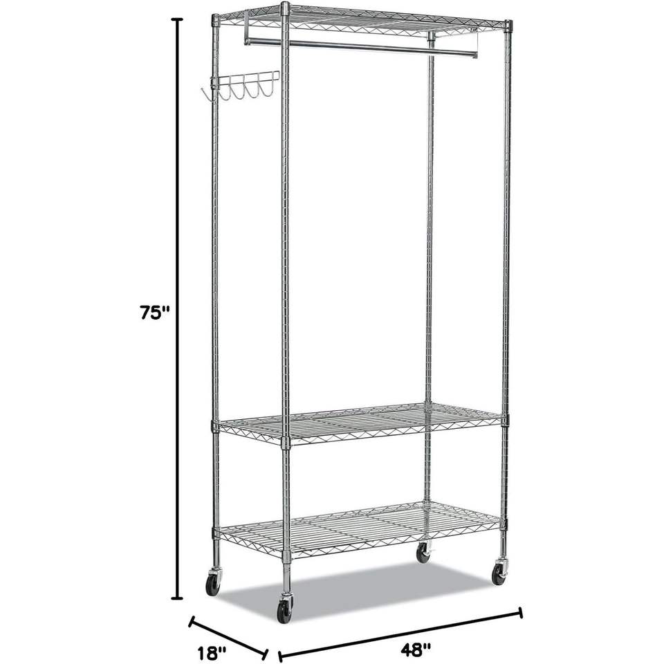 Alera 40-Garment Capacity Silver Wire Shelving Garment Rack 48w X 18d X 75h