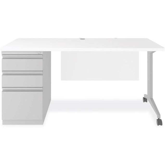 Alera Modern Teacher Series Left-Side Pedestal Desk 60\" X 24\" X 28.75\" White/Silver Box/Box/File Computer Desks