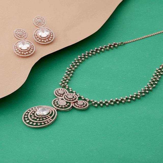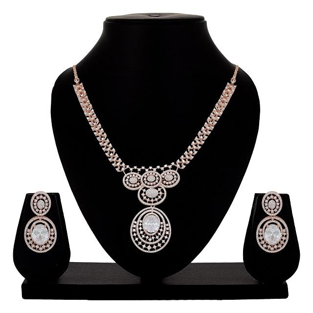 Alex Jewellery Women's & Girls' Oval Radiance Delight AD Choker Necklace with Earring Set Diamond Jewelry