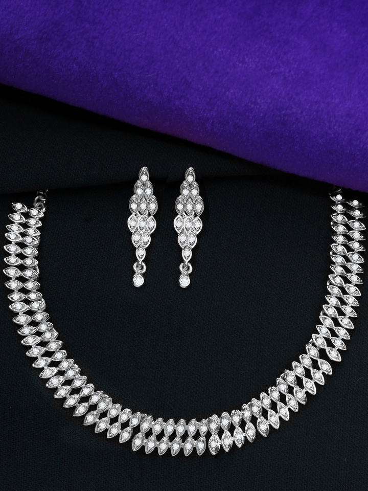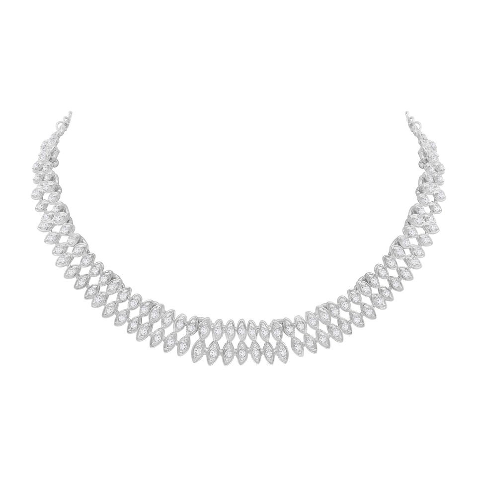 Alex Jewellery Sparkling Leafy Orthodox Traditional Silver Plated Alloy Link Chain Choker Necklace Set-Gift