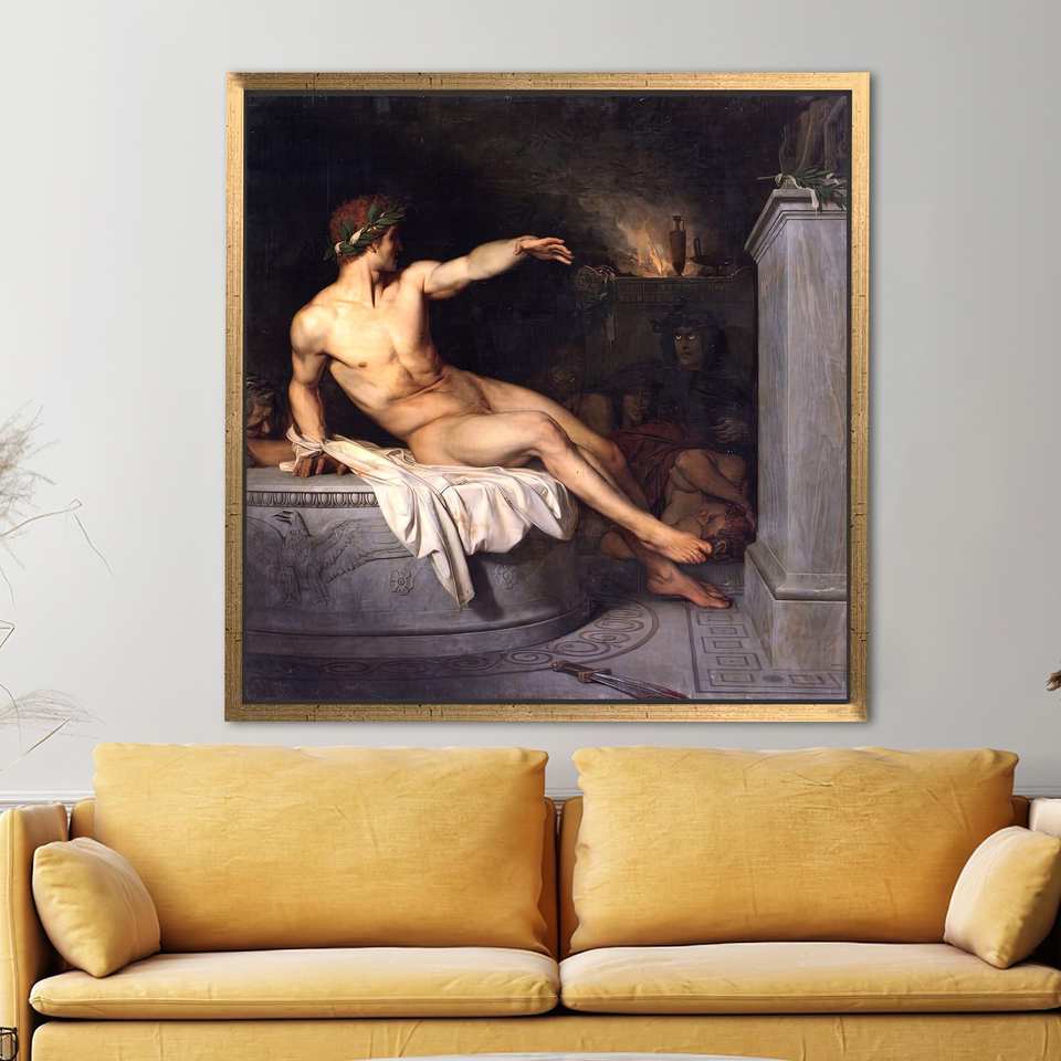 Alexandre Cabanel Reproduction Art Canvas, Flat Printed Vintage Naked Man Artwork,Gold Framed