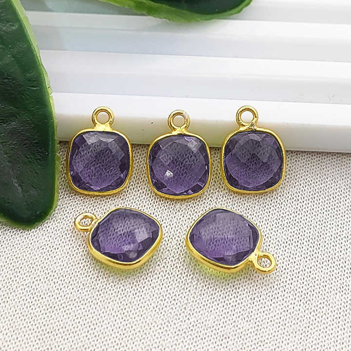 Alexandrite Quartz 8mm Cushion Charms 925 Sterling Silver Bezel Set Pendant Gold Plated Handmade Charms For Jewelry Making Charm