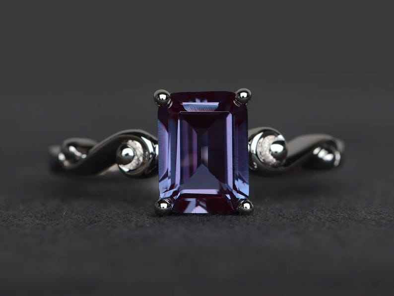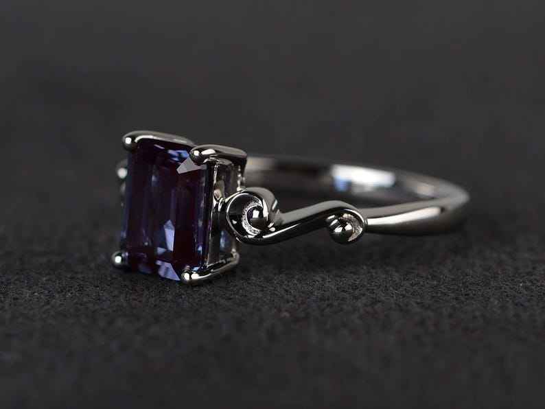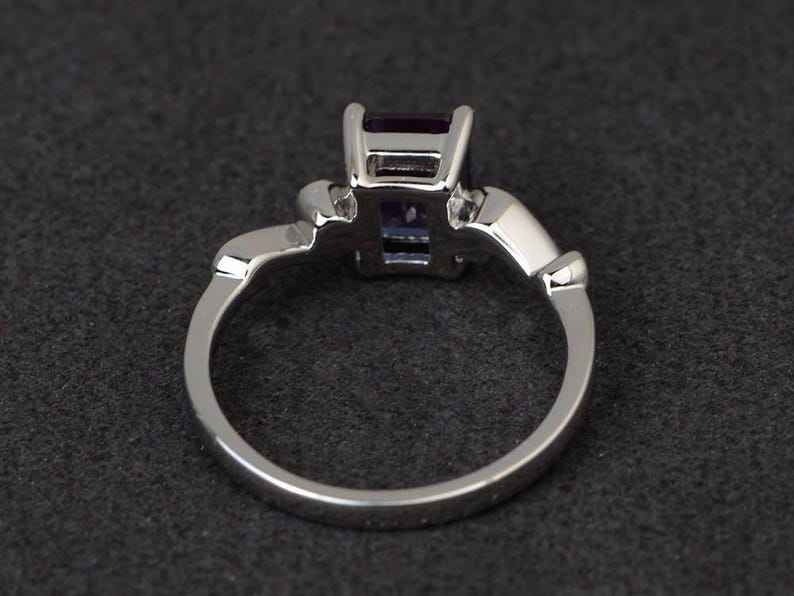 Alexandrite Ring Promise Ring June Birthstone Color Changing Emerald Cut Gemstone Sterling Silver Jewelry