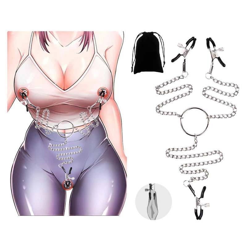 Alfa Customizable Clitoral Clamp Clip with Three-Head Chain Ring SM Bondage BDSM Sex Toy for One's Fun